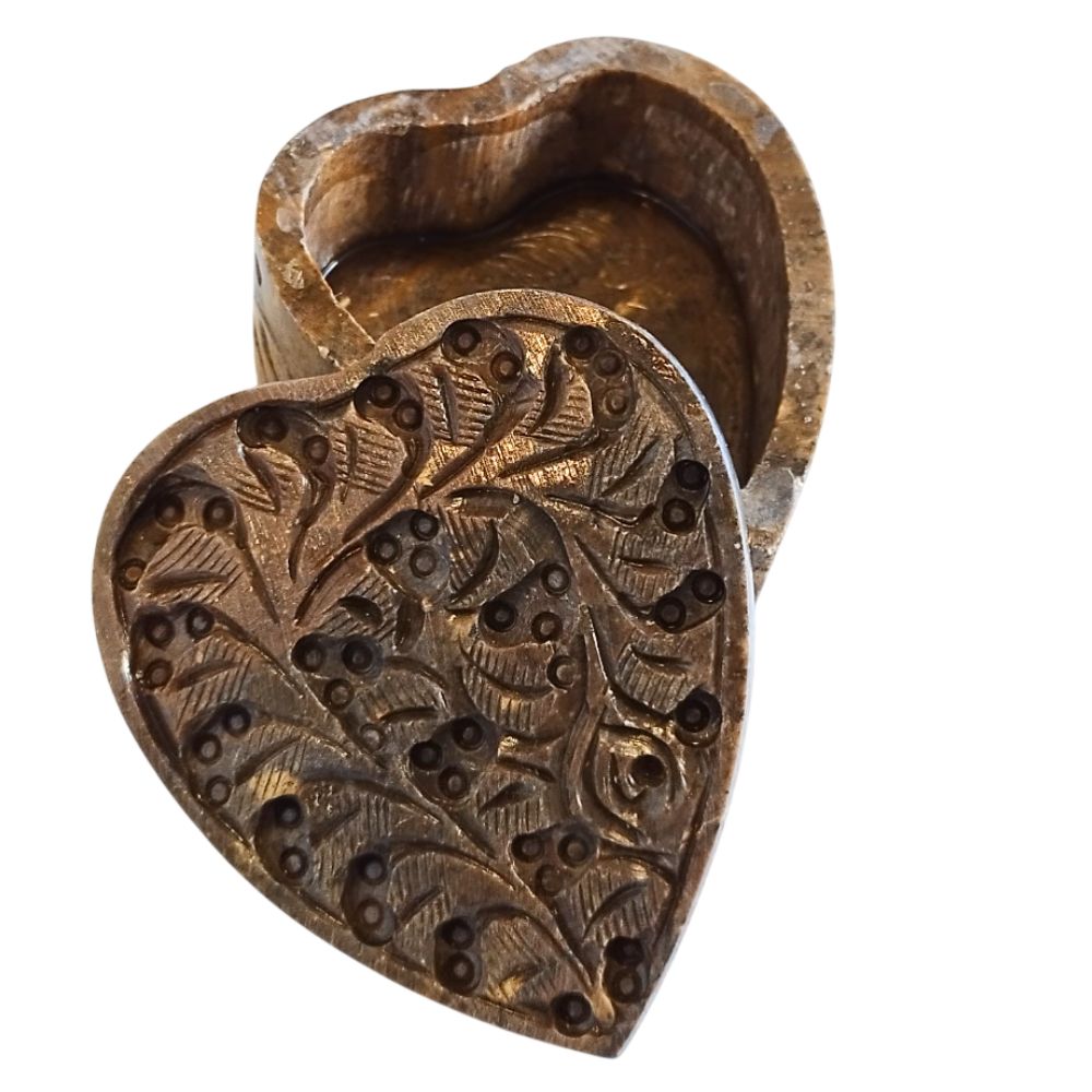 Set de 4 cajas/joyero de Esteatita en forma de corazón.