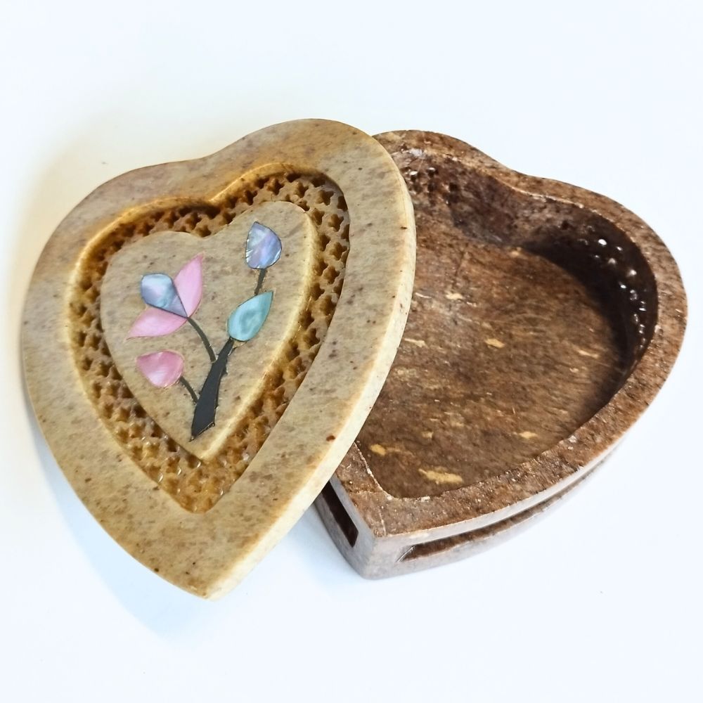 Caja Corazón de Esteatita con flor (Set 2 Un.)