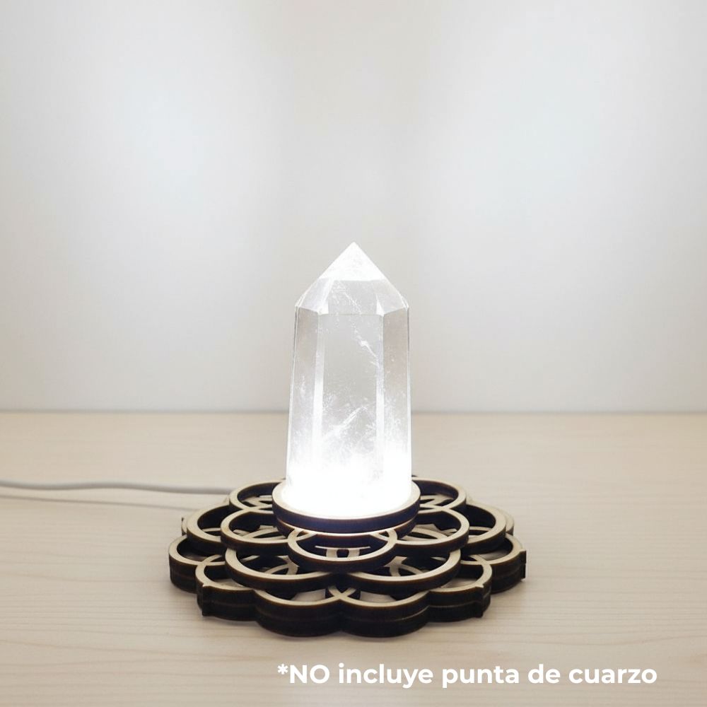 Base de Madera 6 Led Blanca USB con el símbolo de la Flor de la Vida.