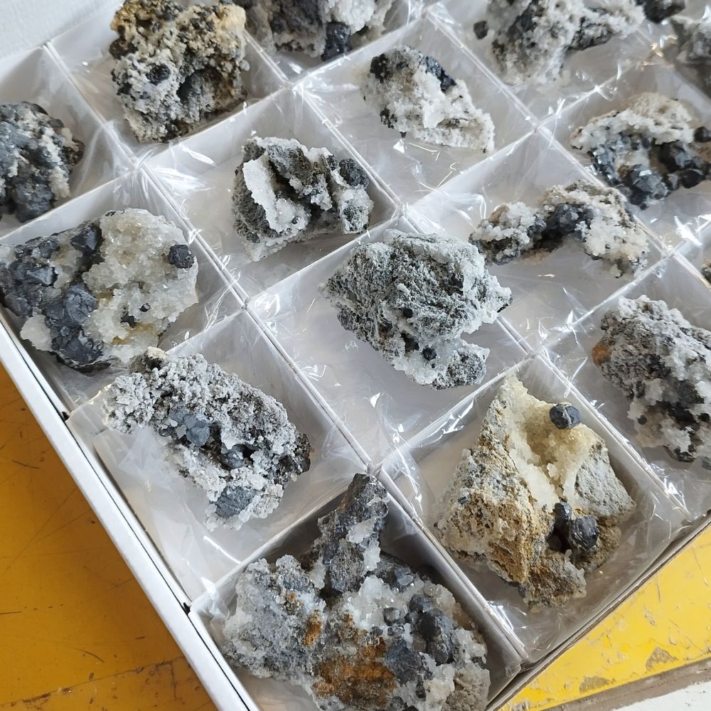 Ejemplares de Marmatita en cajitas de 6x6cm.