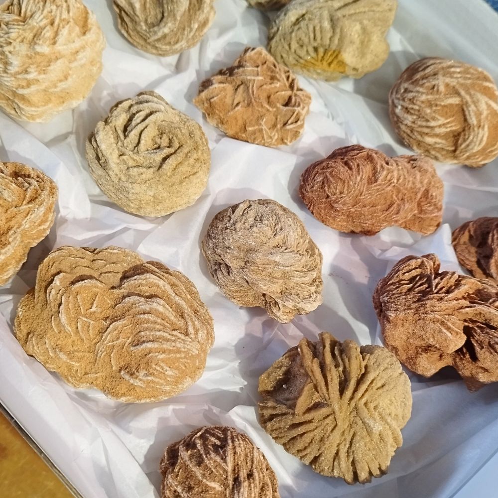 La rosa de baritina es una formación mineral compuesta por cristales de barita (sulfato de bario) que se agrupan de forma radial, imitando los pétalos de una rosa.